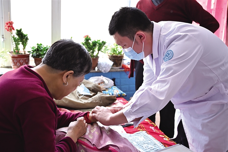 医疗队员们认真询问每一位患者病情病史,细心查体解读检查报告,为他们提供精准诊断和科学治疗方案;耐心讲解常见病、慢性病、科学饮食、康复等医疗及保健知识,详细解答村民疑问、叮嘱注意事项。针对不方便行动的老人,医疗队员们便拎上便携式医疗箱来到家中,为他们检查问诊。