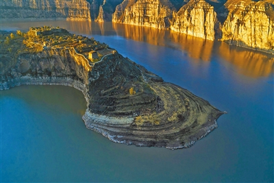 这与眼前的老牛湾相比,亦是有同理可昭的启示。这大河奔流万里,自青藏高原巴颜喀拉山脉的约古宗列曲和卡日曲启程,一路汇小溪、收大河,在若尔盖县唐克乡形成首弯,收白河而复归青海,然后一路奔腾而下,回环繁绕,拐成九曲十八弯。而老牛湾在无数黄河弯曲的河道中最为盛名,皆因黄河不避艰险,一路开拓闯关,劈山凿河,吞并八荒,才在这里形成了瑰丽的自然奇观。老牛湾不仅是一道风景,更是一部关于华夏民族不屈不挠、勇于探索的雄奇史诗。它见证了黄河的坚韧与伟大,也见证了中华民族在一次次从危难中挺立而起,在历史洪流中的奋发图强、奋勇前行的英雄气概。