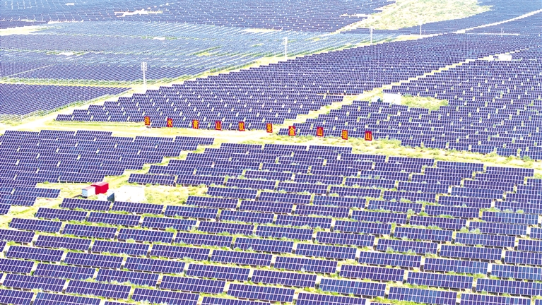 “你看,这路况多好,外出特别方便,以前一个小时的路程现在20分钟,是穿沙公路为这个项目运行提供了前提条件。”项目负责人李飞指着眼前偌大的光伏“蓝海”说。