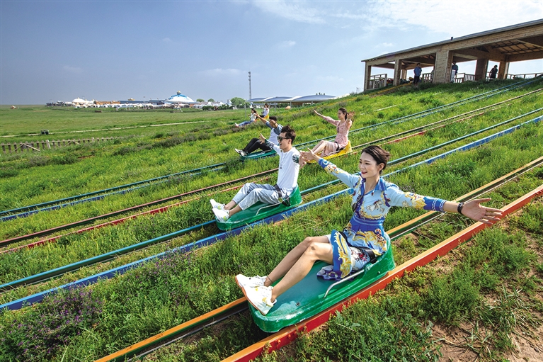 而在鄂尔多斯草原景区内,绿草如毯,人潮似海,实景马术剧、飞天草原等项目吸引众多游客驻足打卡,欢呼声此起彼伏。进入旅游旺季后,景区日接待游客量达到6000余人次,年接待量达到30万人次,年收入达到8400多万。