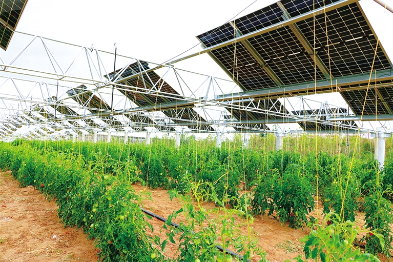 而在朔方新能源大基地,按照板上发电、板下种植,光伏+中草药、光伏+牧草的种植模式,项目区已成功打造出1500亩土壤改良示范田。农牧民将土地流转给企业又去企业干活,户均增收5万多元,有效解决了周边农牧民就业难题。