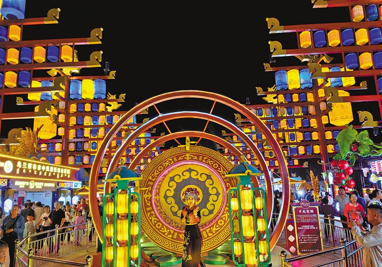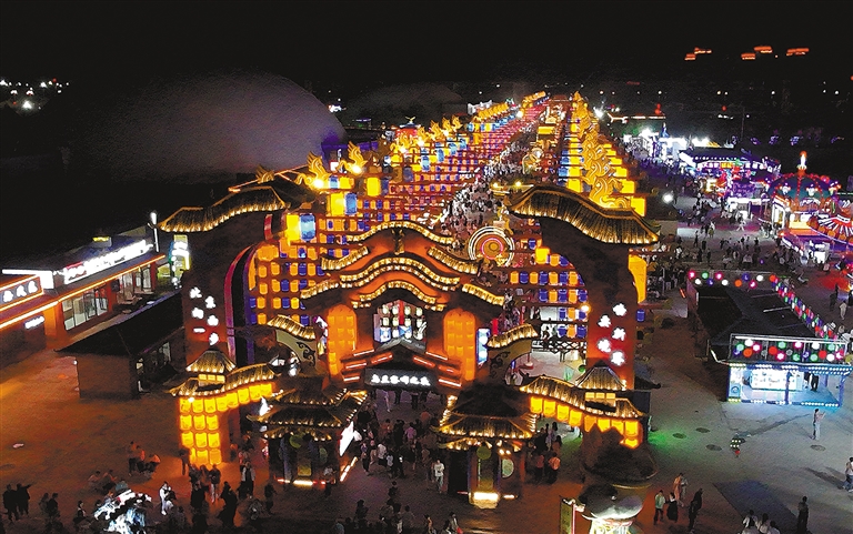 华灯初上,乌兰察布之夜铺展出一幅璀璨画卷。古香古色的街区流光溢彩,主题演绎舞台上的展演精彩不断,各类商品琳琅满目,特色美食飘来诱人香气……来自五湖四海的游客徜徉其中,度过美好愉悦的休闲夜晚。