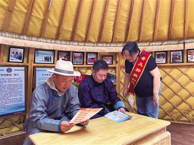 借助多个载体,阵地“用起来”。走进西乌珠穆沁旗乌兰哈拉嘎苏木巴彦淖尔嘎查“流动调解蒙古包”内,哈那上挂着“法律明白人之家”“法律援助联系点”等字样的小牌子,桌子上摆放着各种法律法规读本。“法律明白人”成为农牧民的法治贴心人。全盟利用爱国主义教育基地、新时代文明实践中心(所、站)、“一站式”矛盾纠纷化解中心、社区党群服务中心、社区文化活动中心等场所,因地制宜建设法治文化阵地,打造了一批市民可参与、可体验的北疆法治文化宣传阵地。目前,全盟建立法治文化阵地1026个,实现了嘎查村100%全覆盖。法治文化公园5个、法治文化长廊8个、法治文化广场12个。