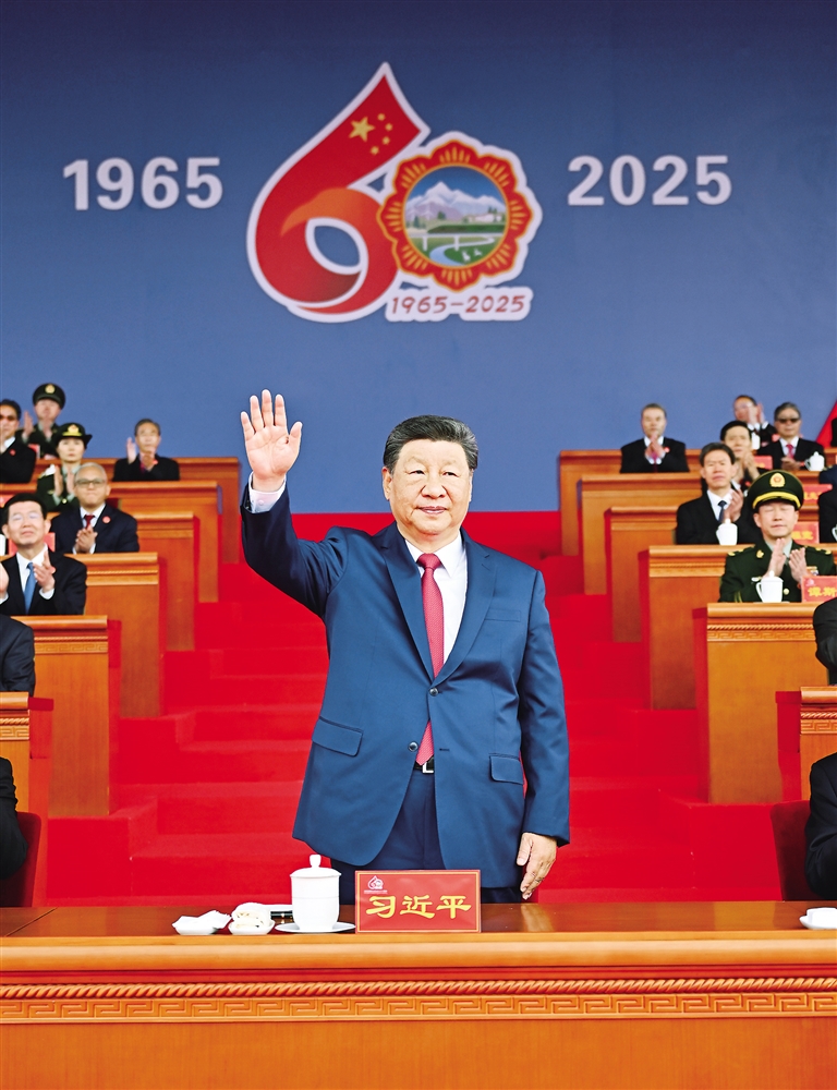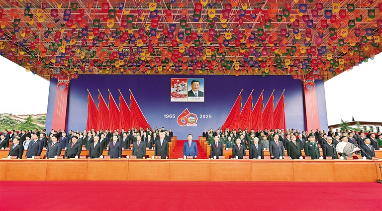 王沪宁发表讲话。他说,1965年9月,在党中央亲切关怀和党的民族政策光辉照耀下,西藏自治区宣告成立。这是西藏发展史上具有划时代意义的大事,巩固了西藏和平解放和民主改革的伟大成果,■下转第3版 ■上接第1版 实现了西藏社会制度的历史性跨越。60年来,西藏经济社会全面发展,民族区域自治制度成功实践,民族团结日益巩固,各族人民生活蒸蒸日上,充分展现了中国共产党领导的坚强力量,充分展现了我国社会主义制度的显著政治优势。