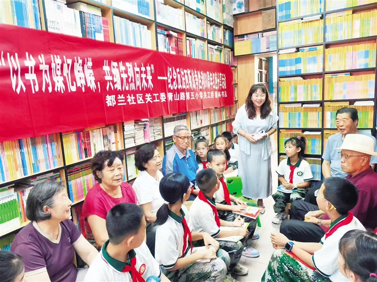 8月20日,包头市青山区青山路街道都兰社区党委联合青山路第五小学关工委及辖区商户语林书店,以“以书为媒忆峥嵘,共缅先烈向未来”为主题,组织社区“五老”人员与学生们开展了红色阅读分享活动,让红色基因薪火相传。图为参加活动的人员交流分享阅读心得。范云燕 摄