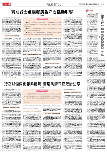 习近平总书记指出:“中国人民在抗日战争的壮阔进程中孕育出伟大抗战精神,向世界展示了天下兴亡、匹夫有责的爱国情怀,视死如归、宁死不屈的民族气节,不畏强暴、血战到底的英雄气概,百折不挠、坚忍不拔的必胜信念。”2025年是中国人民抗日战争暨世界反法西斯战争胜利80周年,全国各地开展多种活动缅怀先烈、铭记历史。在新时代大力弘扬伟大抗战精神,是传承红色基因、凝聚奋进力量,全面推进中华民族伟大复兴的必然要求与时代呼唤。
