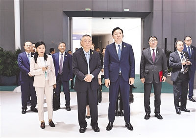 开幕式结束后,蔡达峰和乌其尔勒在孙绍骋、张延昆等自治区领导的陪同下来到敕勒川国际会展中心,参观了内蒙古形象馆、蒙古国馆、海南展区、内蒙古盟市展区、装备制造展区等,不时驻足查看展陈、倾听介绍,深入了解参展情况。