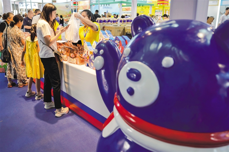 8月27日,游客在第十五届中国-东北亚博览会国际及港澳台特色商品馆内选购俄罗斯特色商品。8月27日,第十五届中国-东北亚博览会在吉林长春开幕。 新华社记者 许畅 摄