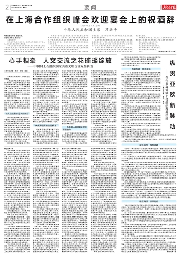 在上海合作组织峰会欢迎宴会上的祝酒辞