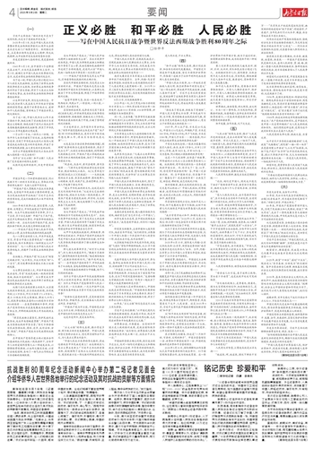 “中国人民抗日战争的伟大胜利,将永远铭刻在中华民族史册上!永远铭刻在人类正义事业史册上!”习近平总书记的重要论断,深刻阐明了这场正义之战的历史地位,更深刻启示这一伟大胜利所绽放的正义之光,将永远照耀人类社会的前行之路。