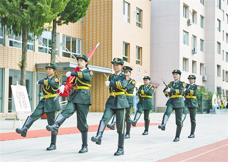 清晨,庄严的升旗仪式在多所学校同步举行。在呼和浩特市赛罕区东风路小学,护旗手步伐铿锵,五星红旗伴随着国歌冉冉升起。为了让红色基因在校园落地生根,呼和浩特市赛罕区南门外小学在升旗仪式后为6个班级授予“国防教育示范班”旗帜,勉励他们学习国防知识,锤炼坚强意志。
