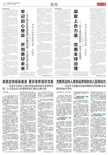 ~~~——习近平主席在上海合作组织成员国元首理事会第二十五次会议上的重要讲话汇聚信心和力量