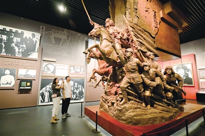 9月2日,观众在内蒙古博物院《解放之路——内蒙古革命史陈列》展厅“抗日烽火”展区参观。为纪念中国人民抗日战争暨世界反法西斯战争胜利80周年,连日来,人们走进纪念馆、展览馆和革命遗址,通过珍贵的文物史料等重温抗战历史,缅怀英烈。本报记者 孟和朝鲁 摄