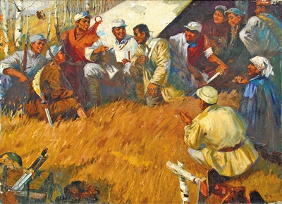 内蒙古自治区成立70多年来,出现了三次革命历史题材美术创作的高峰,一次是自治区成立10周年和新中国成立10周年之际;一次是1976年到新时期之初;一次是新世纪之后。在这一过程中,出现了许多抗战题材的优秀作品,其中最为集中的主题有三类:一是表现百灵庙起义的历史事实;二是表现大青山抗日根据地的战斗生活;三是表现北疆儿女奔赴延安、投身革命的史实。