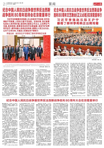 纪念中国人民抗日战争暨世界反法西斯 战争胜利80周年大会在京隆重举行