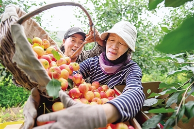 9月6日,果农在兴安盟科右前旗大石寨镇万亩果园采摘沙果。科右前旗今年沙果种植面积10.55万亩,盛果期面积约4.5万亩,沙果产业覆盖6000余户果农,预计2025年产值有望突破亿元大关。曾经不起眼的小沙果,如今成为当地百姓的“致富果”。 本报记者 王磊 摄
