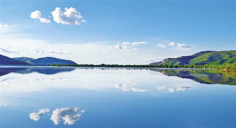 9月5日,呼伦贝尔市牙克石市免渡河国家湿地公园内的凤凰湖水面清澈,如镜面般倒映着青山白云,景致美不胜收。近年来,牙克石市持续加强湿地生态系统保护与修复,积极探索多元化管护方式,免渡河国家湿地公园动植物种类和湿地环境得到了良好的保护和改善,生态系统质量稳步向好。本报记者 马嫣然 摄