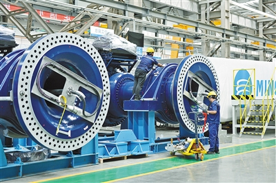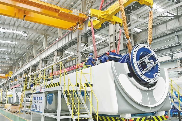据了解,明阳新能源装备智能制造产业园自2022年投产以来,生产的风机应用于多地100多个项目,累计发电约550亿度绿电,三分之一输送至京津冀鲁苏等地区。该产业园是目前国内陆上风电整机制造产能最大、核心部件集中度最高、属地化产业配套最完备、单机容量最大、定制化程度最高的研发、制造、运营及保障基地。