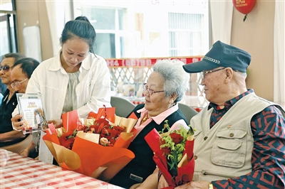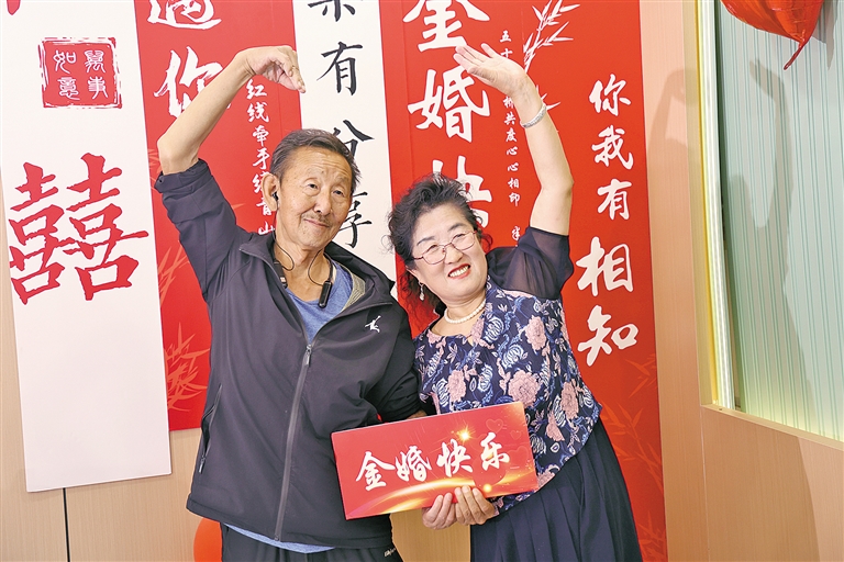 品尝甜蜜蛋糕、颁发金婚纪念证书、分享跨越半个世纪的爱情故事与经营家庭智慧……在呼和浩特市新城区东风路街道丽苑社区举办的金婚庆典活动上,9对金婚夫妇在亲友与居民见证下共度温馨时刻,重温岁月浪漫,传承优良家风。