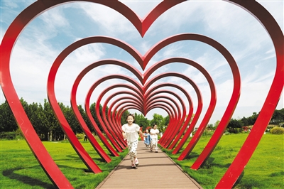 9月13日,小朋友在山东省临沂市河湾公园玩耍。金秋时节,人们利用周末出游赏景,乐享自然。 新华社发