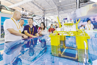 9月14日,观众在环境服务展区中国海洋石油展台前观看模型。9月14日,2025年中国国际服务贸易交易会在北京落下帷幕。
