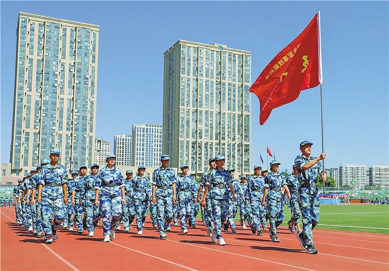 记者在内蒙古大学军训场上看到,军训内容涵盖了军体拳、队列训练、内务整理等多项内容,该校4500余名新生在教官的严格指导下在军训场上挥洒汗水,增强体质,锤炼意志,上好大学生活“第一课”。