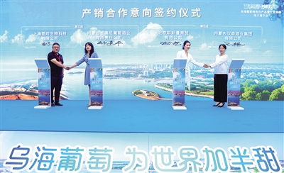 活动中,乌海市农牧局、市文体旅游广电局、市商务局相关负责人分别就乌海葡萄、特色农产品、文化旅游资源及特色美食等内容进行了现场推介,并诚挚邀请广大游客品乌海葡萄,来“沙漠看海”,体验“一城揽尽塞外风”的独特魅力。乌海市葡萄、葡萄酒企业代表与北京市多家企业签署合作协议,双方围绕农产品供应链建设、品牌推广、文旅项目开发等领域进行了务实交流与合作对接。
