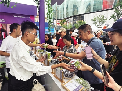 活动期间,提着大包小包的北京市民从乌海展区满意而归,手中沉甸甸的不仅是美味的葡萄,更是一份对乌海优质农产品的全新认识与赞赏。而这场跨越千里的“美味之约”,不仅展现了乌海现代农业发展的成果,更架起了京蒙两地之间的桥梁,为乡村振兴和区域协同发展写下了生动注脚。