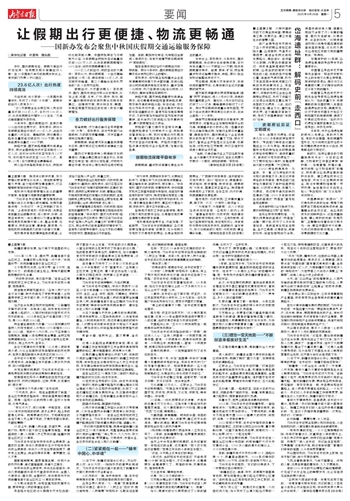 铁路方面,国家铁路局副局长吴德金表示,将统筹高速铁路和普速铁路资源,用好新开通的铁路线路、车站运能,动态优化列车开行方案。在客流集中方向采取动车组重联运行、普速列车加挂车厢等方式,及时安排加开临时旅客列车或夜间高铁,在长途热门旅游路线加开高铁动卧,最大限度增加运力供给。