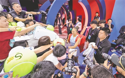 WTT中国大满贯赛同样人气爆棚。来自天津的球迷王禹石说:“在场馆看比赛的感觉还是很不一样,特别是在国庆假期,大家都在为中国选手加油,比赛很精彩,场馆周边也很热闹,氛围特别好。”