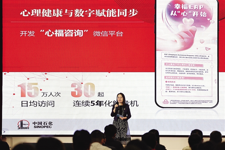 10月10日,来自中国石化的参会代表在活动上进行主题宣讲。10月10日,2025年世界精神卫生日主题宣传活动在北京举行,今年的活动主题为“人人享有心理健康服务”。活动以宣传片、主题宣讲、舞台剧表演等形式开展,并发布了“用支持消除偏见,用服务传递温暖”主题倡议。