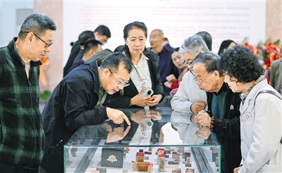 10月11日,观众在内蒙古美术馆参观。今年是内蒙古著名书法家、书法教育家刘兆威先生100周年诞辰,内蒙古美术馆策划举办“纪念刘兆威先生诞辰100周年书法、篆刻、文稿、诗词暨收藏作品展”,通过展示刘兆威先生留下的珍贵书法墨迹、文稿、诗词和收藏作品,领略其作品精湛的书法技艺和深厚的文化内涵。 本报记者 王磊 摄