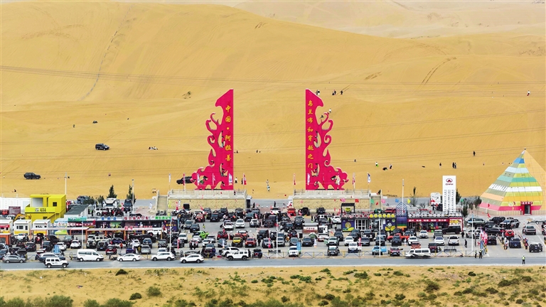 “双节”期间,乌兰布和沙漠以其独有的浩瀚金色沙海、连绵起伏的沙丘地貌,叠加日益丰富的旅游业态,成功吸引全国游客目光,从“小众沙海”蜕变为兼具激情与诗意的旅游热土。据统计,黄金周前七天,阿拉善高新区、乌兰布和示范区累计接待游客12.6万余人次,车辆1.2万余辆;10月3日单日接待量更是突破1.95万人次,热度持续攀升的背后,标志着乌兰布和沙漠作为国内新兴沙漠旅游目的地的地位正式确立。