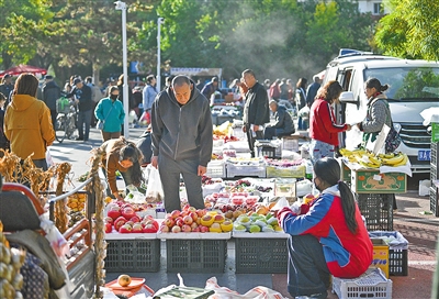 晨曦微露,呼和浩特市北郊公园的早市已是人声鼎沸。新鲜嫩绿的蔬菜、琳琅满目的水果、各式各样的日用杂货一应俱全。商贩们清亮的吆喝声与顾客们热闹的讨价还价声交织在一起,宛如一首充满活力的市井交响曲,浓郁的生活气息扑面而来。