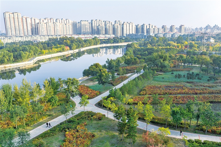 10月14日,呼和浩特市赛罕区小黑河景观带秋色正浓,市民游客在此漫步休憩,尽享秋日惬意。截至目前,首府绿道建设总长度已达679.12公里,这条生态“绿丝带”有机串联起了绿地、水系与城市空间。