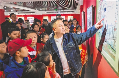 10月18日,观众参观国画作品。当日,国家艺术基金2025年度传播交流推广资助项目《奥林匹克美术大会作品巡展-呼和浩特站》在呼和浩特市美术馆(书画院)开展,共展出95位参展艺术家的198幅书法国画作品。本报记者 王磊 摄
