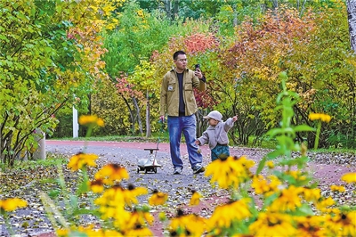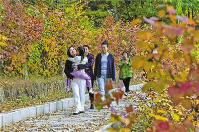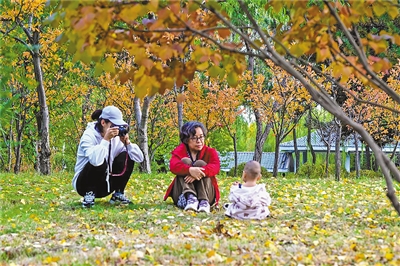 深秋的呼和浩特市扎达盖公园内层林尽染、秋色正浓。红、黄、绿等缤纷色彩交织的林木花草间,市民游客们漫步赏秋、拍照打卡,尽享这份独属于秋日的惬意与浪漫。