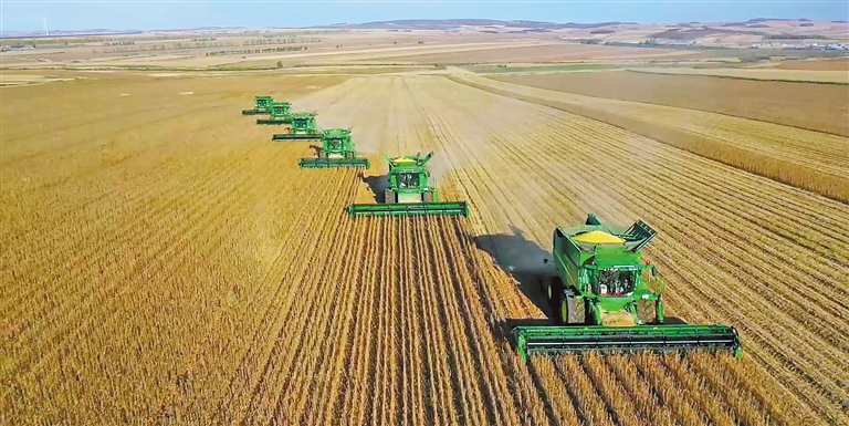 金秋时节,内蒙古产粮大市呼伦贝尔的2500万亩粮田迎来丰收。