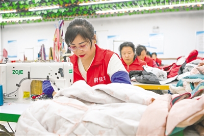 10月22日,呼和浩特市新城区呼伦路区域服务中心府兴社区“社区工厂”的工人正在加工各类服饰。该社区利用闲置场所,与内蒙古德利源服饰有限公司合作成立“社区工厂”——内蒙古府依坊服饰有限公司,将培训基地、就业场所放在群众家门口,通过培训,已有70多位妇女熟练掌握盘扣制作及缝纫机制衣等手工艺技能。本报记者 孟和朝鲁 摄