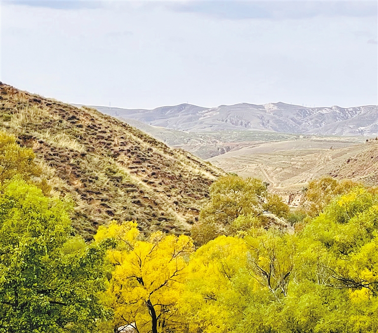 深秋时节,位于呼和浩特市和林格尔县东南端的圣山,层层叠叠的树叶被染成绚丽的橙红和金黄,间或泼染着墨绿色,与山脉、古长城遗址构成了一幅流动的画卷。