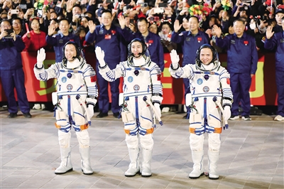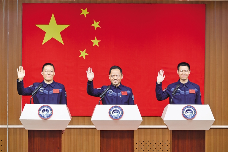武飞10月30日在问天阁与中外媒体记者集体见面时激情澎湃地说:“作为航天员队伍中最年轻的一员,迎来自己的飞天任务,我深感无比幸运。这份幸运,源于我们正处于一个航天事业跨越式发展的伟大时代——我们的空间站已经成为璀璨星河中最闪耀的‘太空之家’;源于常态化的天地往返让年轻一代有了更多、更早为国出征的机会;更源于成千上万名科研工作者用智慧和汗水为我们搭建起这座通往星辰大海的‘天梯’。”