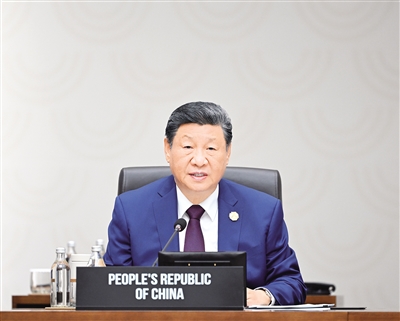 当地时间11月1日上午,国家主席习近平在韩国庆州出席亚太经合组织第三十二次领导人非正式会议第二阶段会议,并发表题为《共同开创可持续的美好明天》的重要讲话。新华社记者 谢环驰 摄