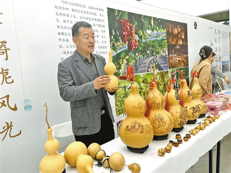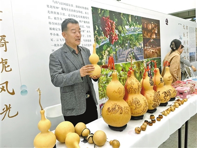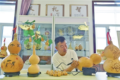 为了让更多人了解葫芦烫画的艺术魅力,苏海峰先后带着他的作品前往北京、上海、天津等地参加各类展会,并且借助当地社会组织在各地参展销售,取得了可观的经济利益。