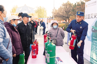 11月11日,在呼和浩特市阿尔泰游乐园广场,消防员为市民普及消防知识。当日,呼和浩特市消防救援支队举办119消防宣传月主题活动。活动重点围绕家庭、社区及单位防火与火情处置展开,现场通过“打卡集知识”的宣传方式,以点带面传播消防知识。 本报记者 怀特乌勒斯 摄