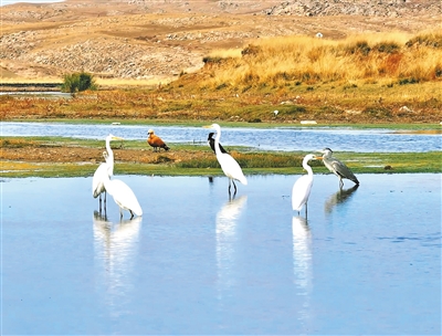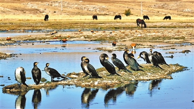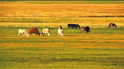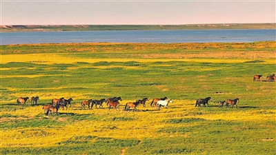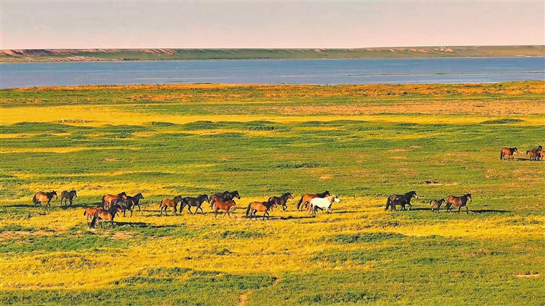 初冬的包头市达茂旗草原,是一幅动人的“绿底金边”画卷。冰草在晴空下泛着金光,牛、马、骆驼、羊徜徉其间,衬托出草原的静谧。成群的鸬鹚、赤麻鸭等野生鸟儿,嬉戏、休憩在艾不盖河边湿地,为这片草原增添了欢腾气息……曾经刺目的沙化地已被茂密植被覆盖——这是草原生态修复最直观的答卷。