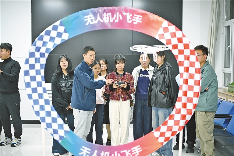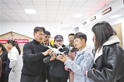 “无人机分为多旋翼、固定翼等机型,核心组件包括机身、飞控……”11月11日,在包头市昆都仑区友谊大街锦绣家园社区党群服务中心,内蒙古无人机运动协会无人机教员正在青年人才夜校课堂给大家介绍无人机操控方法。课堂上,学员们围绕无人机操控、禁飞区域、飞行高度、距离等踊跃提问,并在教员的指导下进行试飞体验。