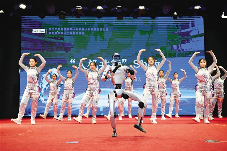 11月15日,学生舞蹈团和人形机器人在主论坛现场表演“人机共舞”开场秀。本次活动由北京教育融媒体中心、通州区教委和怀柔区教委共同主办,通过专家报告、平行论坛、企业展示、人形机器人实践培训等形式,为科研机构、学校、科技企业搭建沟通平台,展示具身智能等方面的最新成果并探讨前沿科技对基础教育的新影响新要求。300余名中小学校长、教师及科博场馆工作者参会。