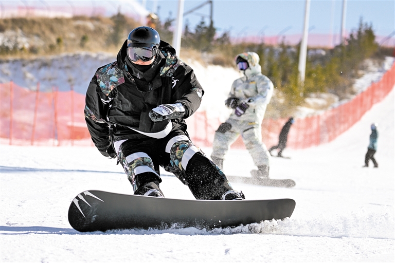 11月18日,滑雪爱好者在呼和浩特市马鬃山滑雪场滑雪。当天,马鬃山滑雪场开板营业,吸引了滑雪爱好者前来嬉雪,拥抱大自然,乐享冬日时光。本报记者 王晓博 摄