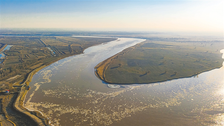 11月21日,黄河托克托县柳林滩村段景象。记者从呼和浩特市托克托县水务局获悉,11月20日8时,黄河托克托县段正式出现流冰花现象,冰花密度约为20%,较2024年提前7天进入凌汛期,目前凌情发展平稳。 本报记者 郑学良 摄