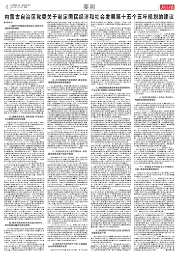 (2)“十五五”时期内蒙古发展面临新机遇新挑战。“十五五”时期是我国基本实现社会主义现代化夯实基础、全面发力的关键时期,在基本实现社会主义现代化进程中具有承前启后的重要地位。我国经济基础稳、优势多、韧性强、潜能大,长期向好的支撑条件和基本趋势没有变,中国特色社会主义制度优势、超大规模市场优势、完整产业体系优势、丰富人才资源优势更加彰显。这一时期也是内蒙古高质量发展、加快闯新路的关键时期,还将迎来自治区成立八十周年,我区发展拥有诸多有利条件。党的十八大以来,习近平总书记3次考察内蒙古、5次参加全国人代会内蒙古代表团审议,作出系列重要讲话重要指示,给我们以科学的方向指引、巨大的精神鼓舞、强烈的使命感召。新一轮科技革命和产业变革加速突破,我国新发展格局加快构建、“双碳”工作纵深推进,为内蒙古把能源、资源、区位、农牧业等优势转化为高质量发展优势创造了广阔空间。随着西部大开发、东北全面振兴、黄河流域生态保护和高质量发展等国家战略叠加效应充分显现,《国务院关于推动内蒙古高质量发展奋力书写中国式现代化新篇章的意见》等政策红利持续释放,我区发展的动能将更加充沛。同时,我区发展不平衡不充分问题仍然突出,经济发展水平同资源禀赋还不相称,科技创新能力不足,新兴产业规模不大,传统产业支撑作用减弱;农牧业和农村牧区现代化任务艰巨;开放发展水平不高;城乡居民增收渠道较窄,基本公共服务水平仍然偏低;人口结构变化给经济发展和社会治理带来新挑战;重点领域风险隐患不容忽视。全区各级要保持战略定力,增强必胜信心,以改革创新思维扬优势、补短板、强弱项,以历史主动精神克难关、战风险、迎挑战,不懈努力、接续奋斗,书写好中国式现代化内蒙古新篇章。